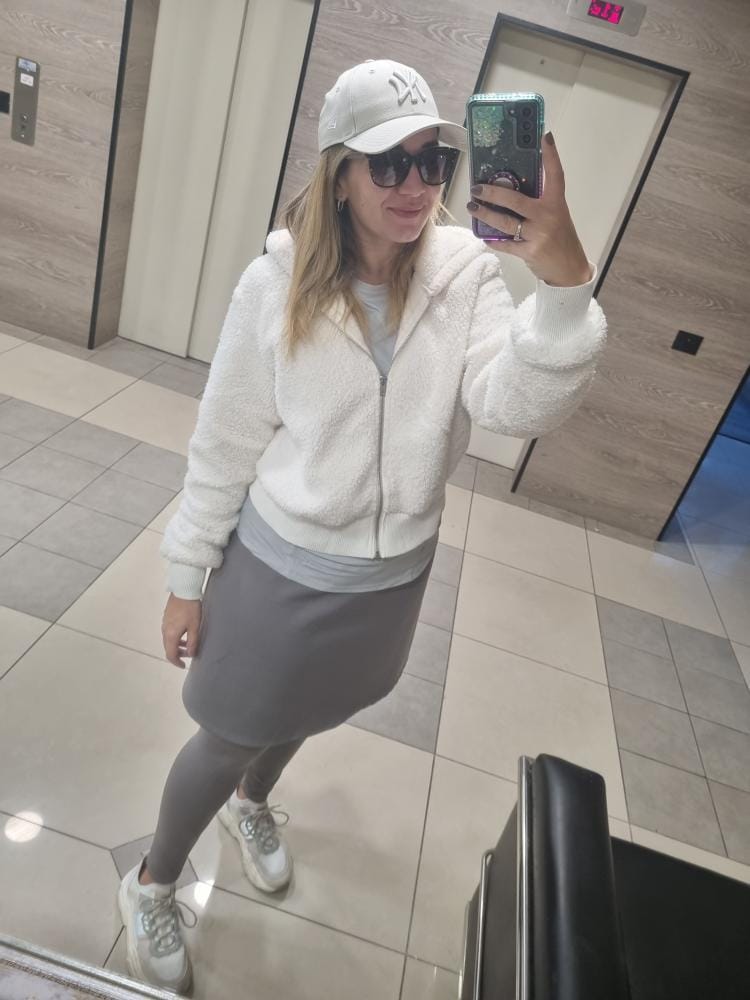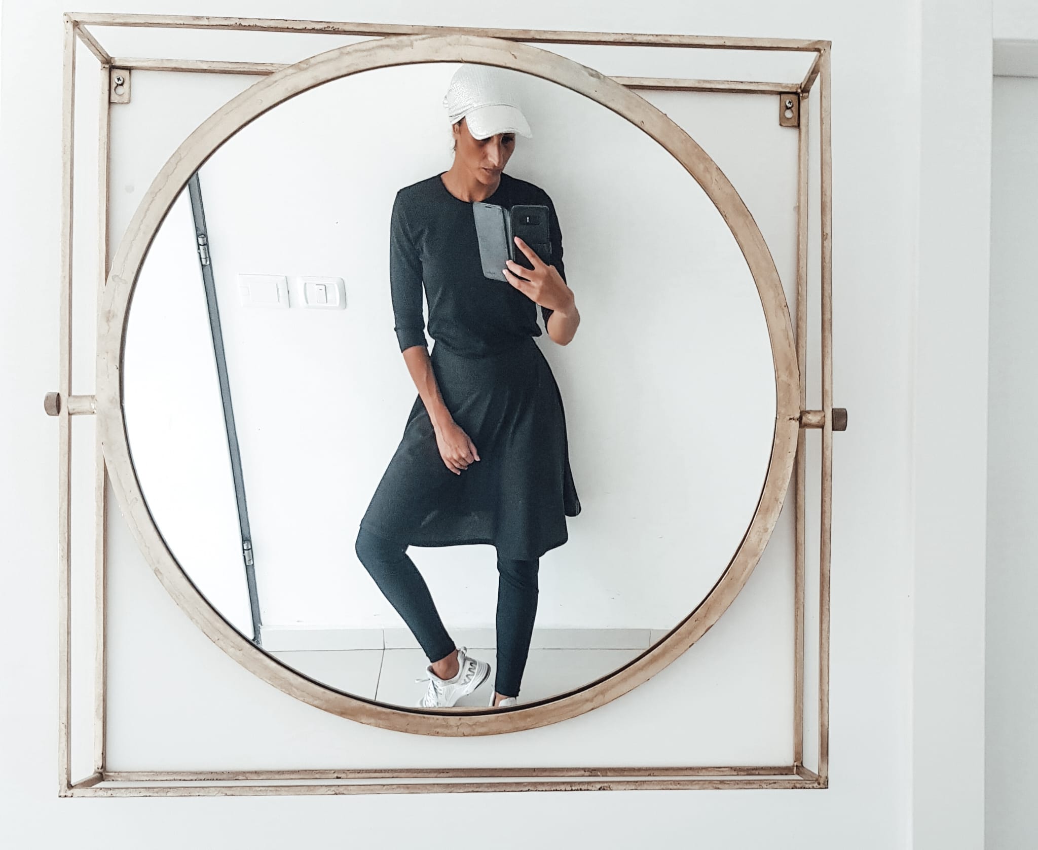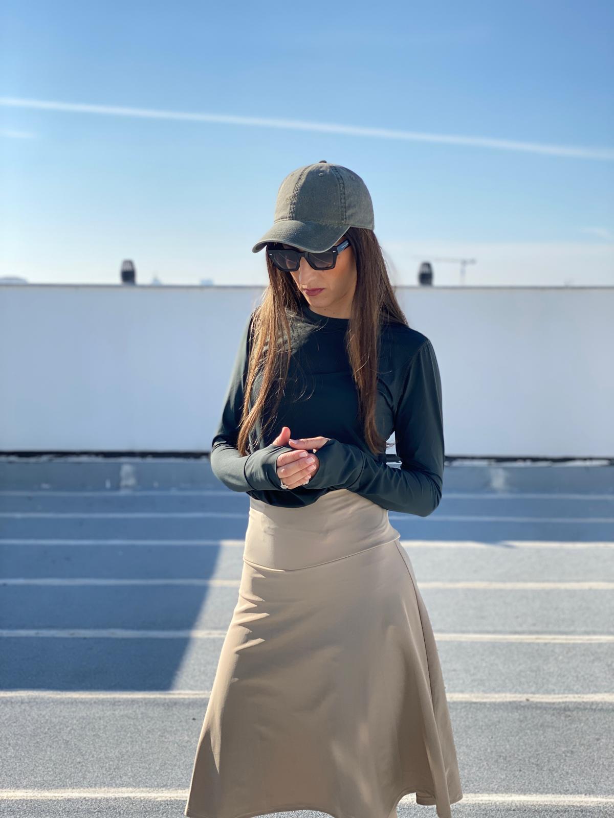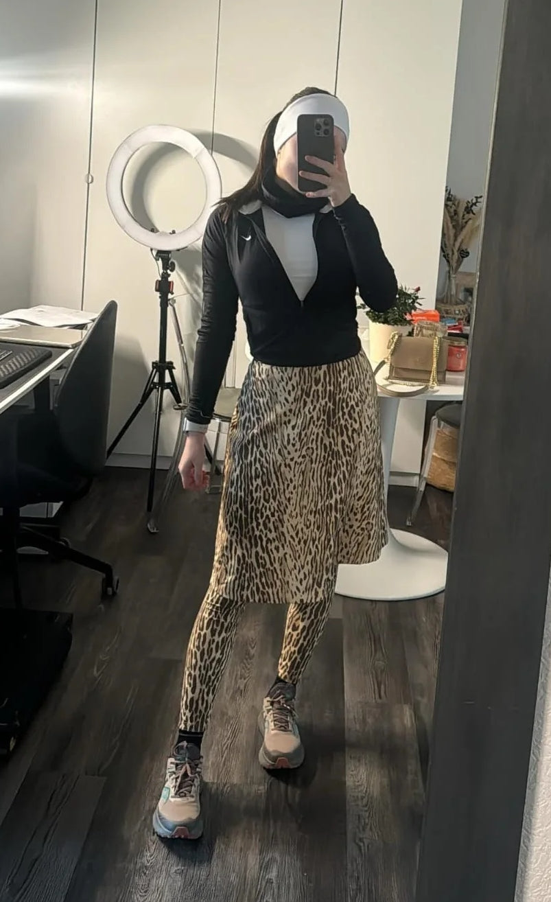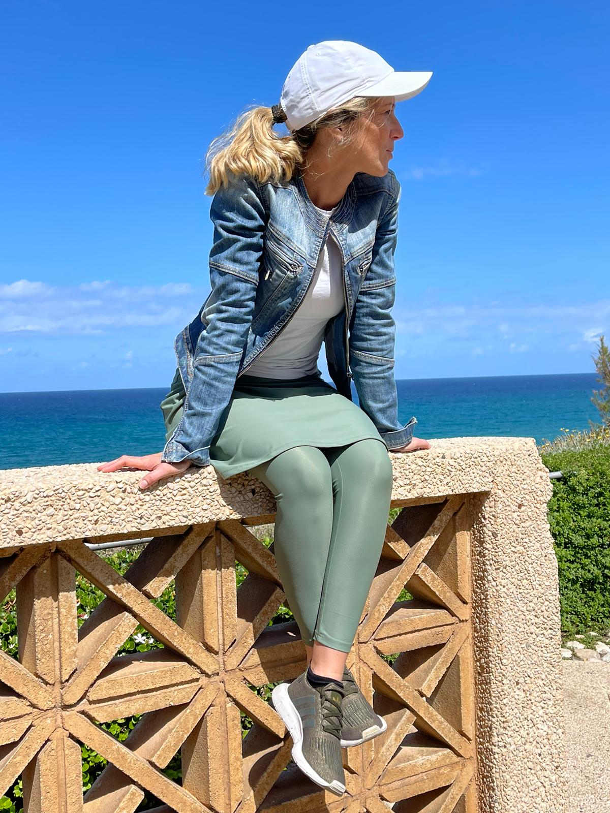 I don't dress modestly everyday, but I don’t feel comfortable wearing a legging in the street. The skirted-legging is great, not only when I exercise, but also when I travel! The perfect outfit!
